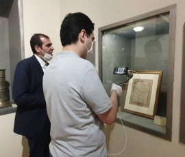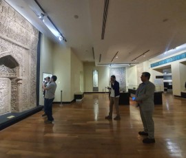 سپس کرم میرزایی موزه دار و رئیس این موزه با توجه به چیدمان و موزه آرایی آثار به تشریح سالن ها و تالارها روایت فرهنگ و هنر ایران از سامانیان تا پایان دوره قاجار در قالب دوره های تاریخی دوره صدر اسلام، دوره سلجوقی، ایلخانی، تیمور، صفوی، قاجار و در نهایت تالار ارزشمند قرآن پرداختند.
