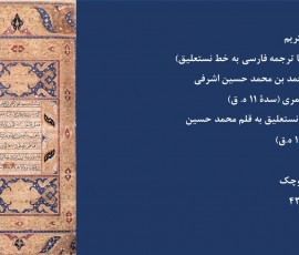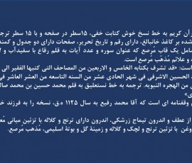 ترجمه به خط نستعلیق به قلم محمد حسین مازندرانی( ١١٠١ ه.ق)
