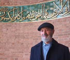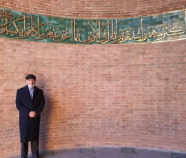 کتیبه برجسته طلایی رنگ آیه ۸۲ سوره غافر بر کاشی های زمینه آبی سبز با تلالویی چشم نواز که یادآور سال ها قرابت با این بنای عظیم است.