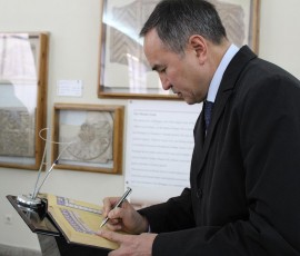 امروز یکشنبه ۵ آذر ماه موزه ملی ایران میزبان “اسکار میرزاخماتوف”، معاون نخست وزیر و وزیرکشاورزی کشور قزاقستان بود. ایشان و هیات همراه از موزه ایران باستان بازدید نموده و پس از اتمام بازدید در دفتر یادبود موزه ایران باستان چنین نگاشت :