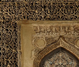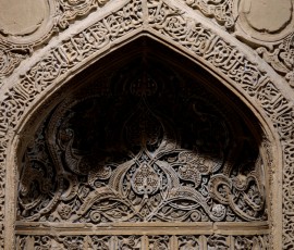 کتیبههای نقش شده بر روی این محراب گچبری با خطوط کوفی و ثلث در میان نقوش زیبای اسلیم و هندسی زیبایی خاصی به آن بخشیده است.
