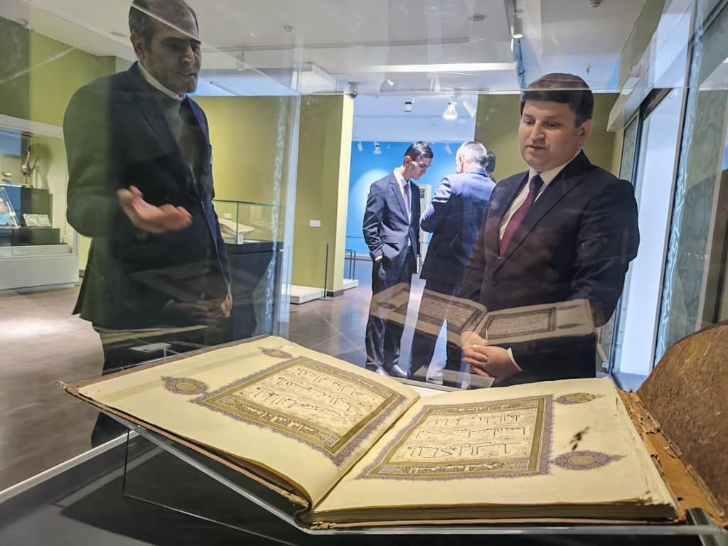 آقای علیشر ظریفی نیز که حامل پیام دوستی از سوی ظفرشو ابراهیمزاده، رئیس کل موزه ملی تاجیکستان بود، درباره گسترش روابط فرهنگی دو کشور در سالهای اخیر و لزوم برگزاری نمایشگاههای مشترک صحبت کرد. وی با تأکید بر فعالیتهای بینالمللی موزه ملی تاجیکستان و برگزاری نمایشگاه در کشورهایی مانند چین، مصر و آذربایجان، اظهار داشت که با توجه به اشتراکات فرهنگی دو کشور، برنامهریزی و اجرای چنین نمایشگاههای مشترکی در آینده نزدیک ضروری است. وی همچنین اظهار امیدواری کرد که کارشناسان موزه ملی تاجیکستان بتوانند از تجربیات موزه ملی ایران در حوزه مرمت، خصوصاً مرمت نسخ خطی، استفاده کنند.